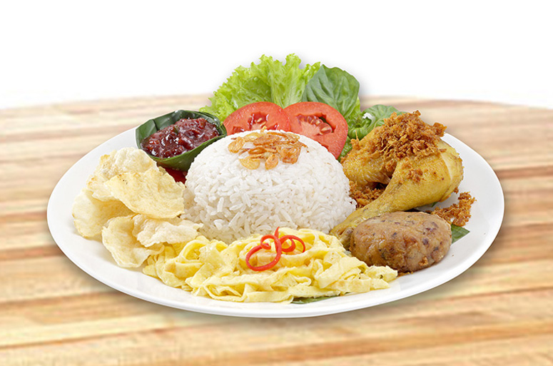 Dapat disajikan dengan ayam goreng, irisan telur, perkedel, emping, sambal dan taburi dengan bawang merah.
