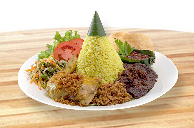 Untuk menambah kenikmatan, nasi kuning dapat disajikan dengan :